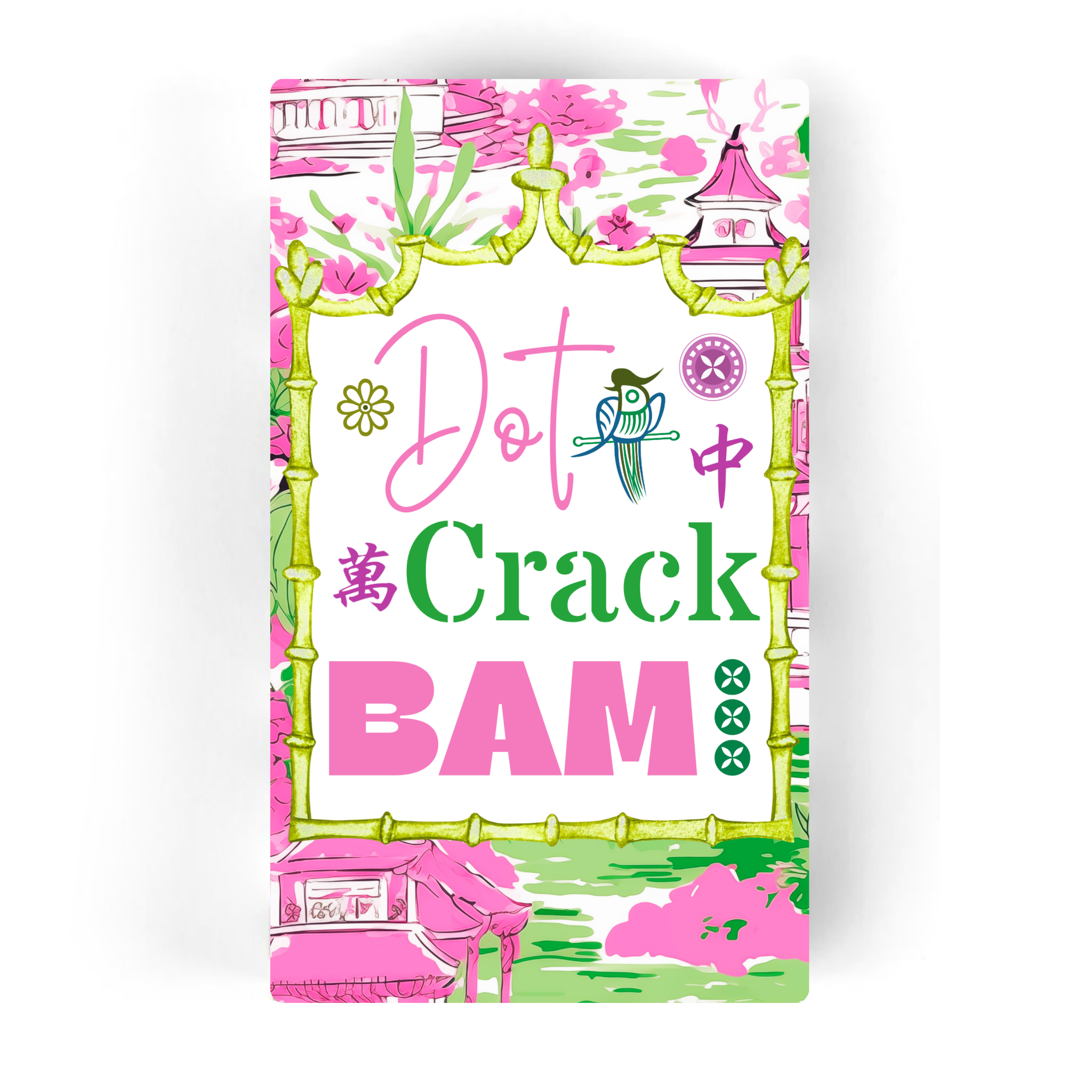 Bring bold, playful energy to your shelves with our “Dot Crack Bam” guest towels in a lively chinoiserie style. This striking design features a bright bamboo frame, hand-illustrated Mahjong icons, and a colorful pagoda scene—perfect for Mahjong nights, happy hours, and hostess gifting.
