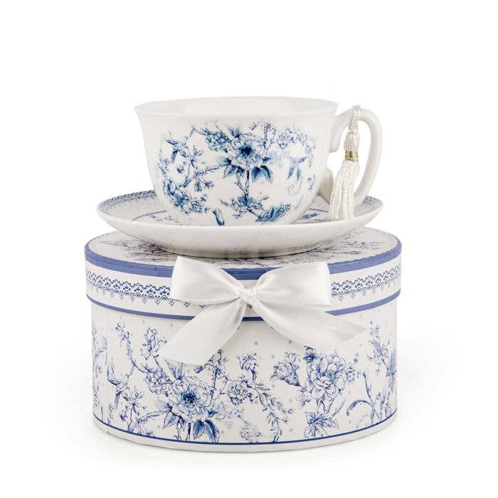 Blue Flowers Porcelain Cup and Saucer Set in Gift Box