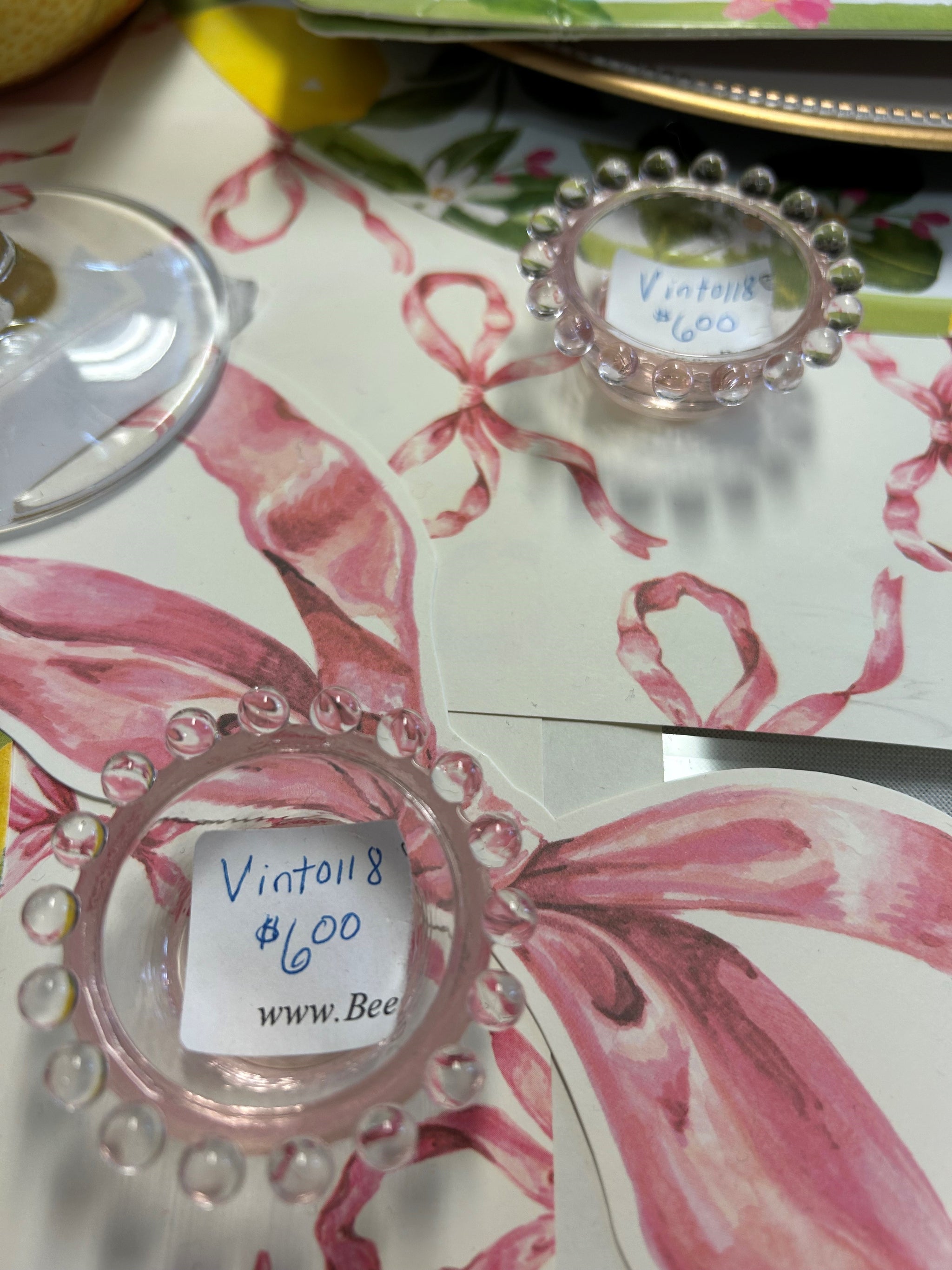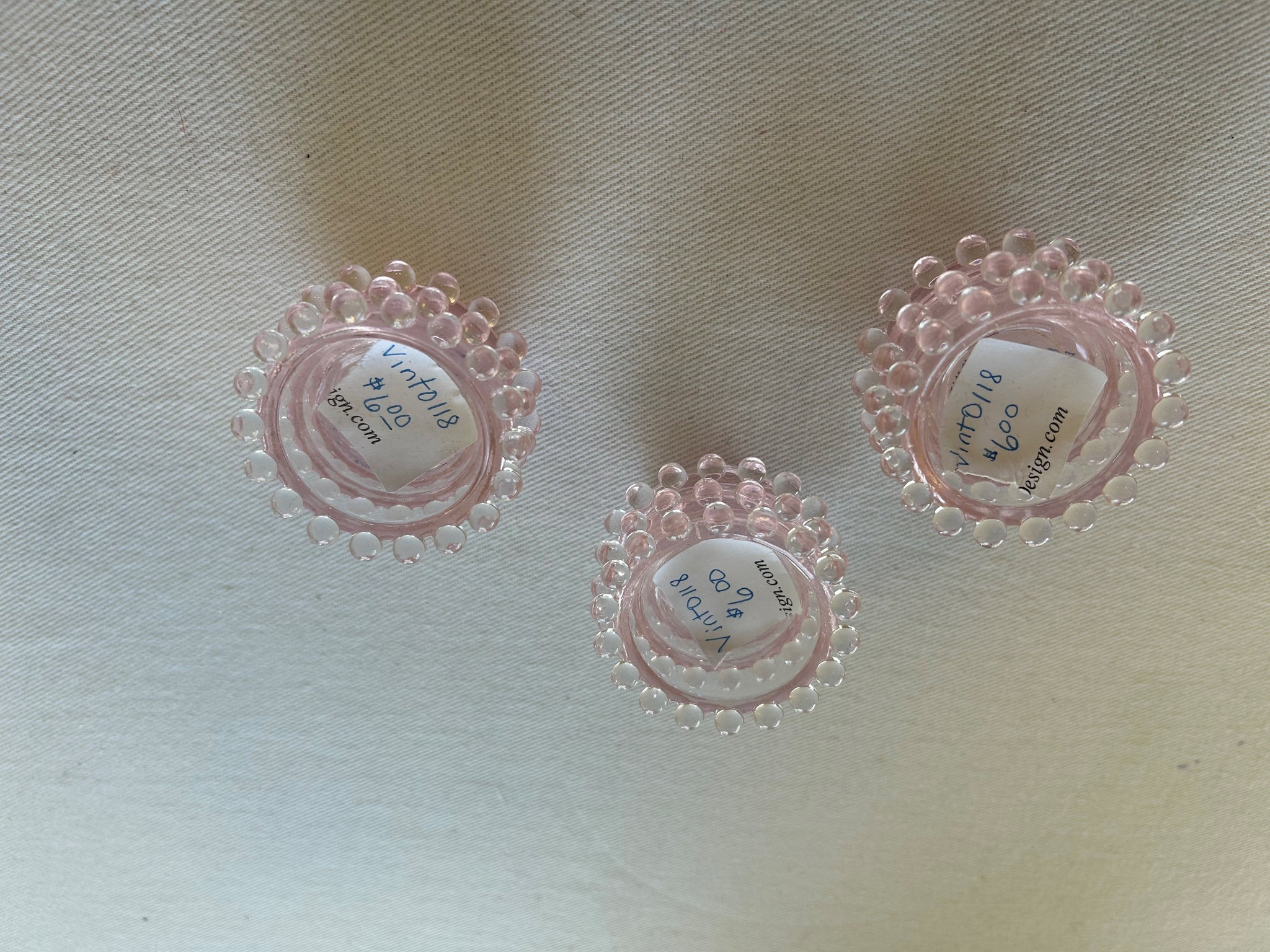 Adorable vintage pink hobnail salt cellars. Just the perfect touch for your spring table.
